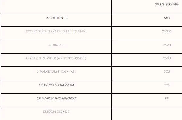 • D-Ribose (2,5 г) – участва в синтеза на АТФ и подпомага възстановяването