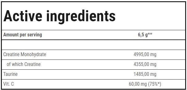 Creatine Micronized 200 Mesh + Taurine contains crystal-clear micronized creatine monohydrate, characterized by excellent absorption by the body. Creatine is known for its strong anabolic and ergogenic properties, which significantly improve endurance and performance. In addition to creatine, this supplement contains taurine - a substance known for improving athletic performance. The substances work together to produce qualities that will allow users to achieve new levels of success in terms of muscle, strength and endurance. The product works quickly and effectively and produces chemical reactions that help the body recover quickly from the depletion of nutrients lost during training or exertion. These qualities make Creatine Micronized 200 Mesh + Taurine a must-have addition to the regimen of all athletes.