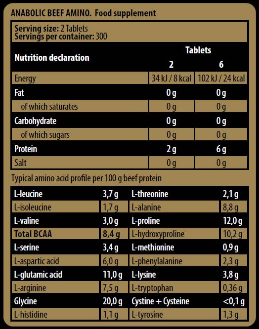 Anabolic Beef Amino е хранителна добавка, която подпомага мускулното възстановяване и синтеза на протеин чрез аминокиселини от говеждо месо.