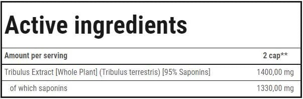 Nutrition has a great influence on the production of endogenous testosterone, its secretion and the period of activity in the body. You should eat regularly and in no case eliminate fats from your daily menu, since fatty compounds (such as cholesterol) are the basis for the production of testosterone. Unsaturated fatty acids are the healthiest option. The levels of some essential minerals (zinc, selenium and magnesium) are also extremely important. All of these components are essential in the process of testosterone production in the testicles, as well as in limiting its biological deactivation. Research is being conducted on the effect of natural plant extracts on testosterone levels. Many plants traditionally used as aphrodisiacs and libido enhancers are being analyzed. Researchers are trying to find out exactly which chemical compounds have a positive effect on the male hormonal balance. This involves isolating thousands of components from numerous plant species. It has been discovered that not one compound, but a whole group has a positive effect on testosterone production: steroidal saponins. The chemical backbone of their molecules is very similar to that of testosterone. This means that the body is able to use steroidal saponins as a basis for the production of its own steroid hormones, including testosterone. The plant of particular interest to researchers is Tribulus terrestris. The plant steroids in it can help increase the activity of LH, which controls the production of testosterone in the testicles. They are the main building blocks for the synthesis of endogenous testosterone, and also stimulate its secretion and help optimize its levels in the body. The main steroidal saponins in Tribulus are tribulosin, protodioscin, terrestroside, tribuloside, terrestrosin AE and terrestrosin FK. Although the substances affect hormonal balance, they only optimize testosterone levels. This allows you to increase your natural anabolic potential without taking illegal supplements. TRIBULON BLACK contains Tribulus terrestris extract with a uniquely high concentration of steroidal saponins. The formula is standardized to 95% content of these active testosterone analogues. This is extremely important because unlike other products on the market, TRIBULON EXTRACT contains concentrated active compounds from Tribulus, not less effective dried herbs. The content of steroidal saponins in the product is constantly monitored to maximize the pro-testosterone potential of the product from the first dose.
