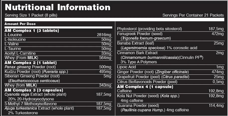 Animal M-Stack is an anabolic clinically tested supplement for protein synthesis, maintains positive nitrogen balance and releases more nutrients for pure muscle growth. Reduces muscle catabolism.