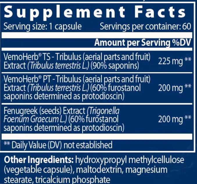 Dry extracts of Bulgarian Tribulus terrestris and Fenugreek.