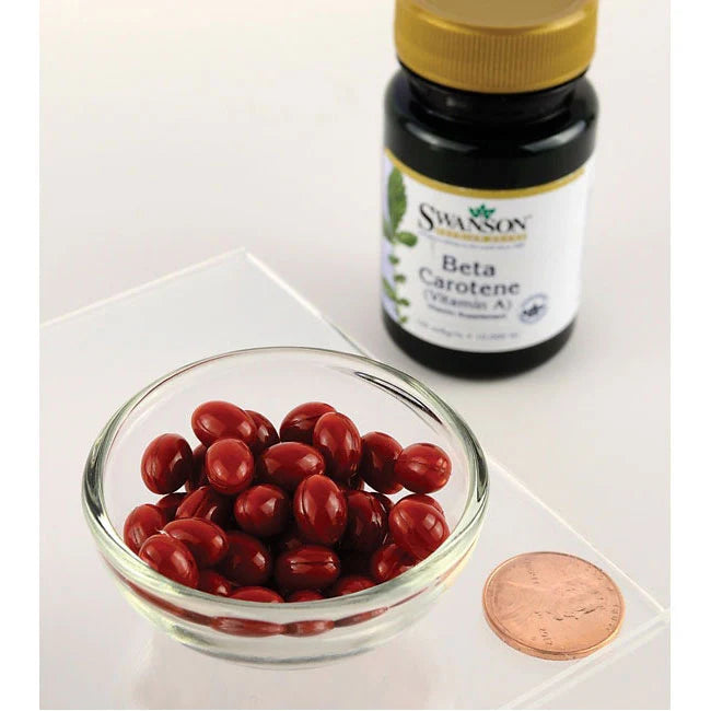 Take Beta Carotene (Vitamin A) from Swanson and dramatically improve your skin and eye health. Beta carotene is a plant pigment, also known as a carotenoid, that has proven antioxidant benefits. Beta carotene is a form of Vitamin A, it is converted to Vitamin A in the intestines and is therefore also called provitamin A. This substance is mainly found in plants such as carrots, sweet potatoes, pumpkin, spinach and kale, and fruits such as melons and apricots. Beta carotene is different from the animal form of Vitamin A, which is found in foods such as eggs, liver, cheese and whole milk. Taking Beta carotene maintains optimal levels of Vitamin A, which is a major factor in eye health, the immune system, growth and development of the body (especially for children), and skin health. Beta carotene reduces the rate of skin aging, reduces the risk of night blindness and dry eyes. Beta carotene is an important and powerful antioxidant that protects cells (especially skin and retinal cells). It is also used to treat the genetic disease Protoporphyria, which is characterized by hypersensitivity of the skin to sunlight and fluorescent light, leading to itching and redness of the skin. Caution should be exercised when taking high doses of Beta Carotene, especially if users are smokers or drink heavy amounts of alcohol. High doses can cause the skin to appear yellowish or slightly orange, which is temporary and harmless. Swanson Beta Carotene will improve skin and eye health, delivering 6 mg of Beta Carotene in each capsule.