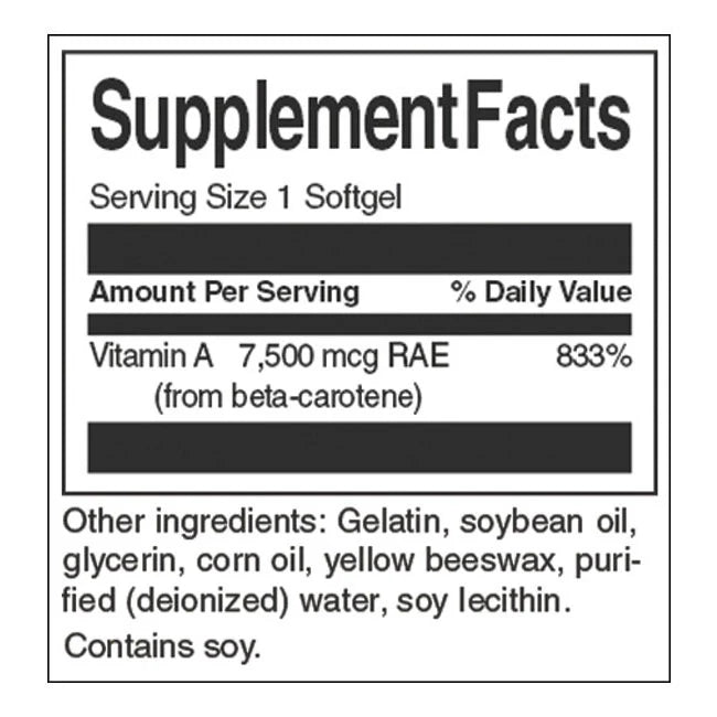 • Each capsule contains 7500 mcg of vitamin A (as beta-carotene)