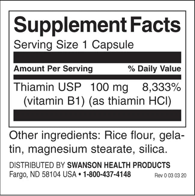 Swanson Vitamin B-1 100 mg is also known as thiamine. It cannot be stored in the body and is essential for its daily diet. One of the most important functions of vitamin B1 is to maintain all tissues in the body. It also helps convert food into energy. Vitamin B1 supports the health of the nervous system, contributes to the conversion of carbohydrates into glucose, as well as the breakdown of fats and proteins. Vitamin deficiency is observed in people suffering from alcoholism, Crohn's disease and anorexia. Its deficiency can cause problems with the heart and nervous system.