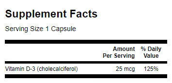 Each capsule contains 25 micrograms of Vitamin D3 as cholecalciferol