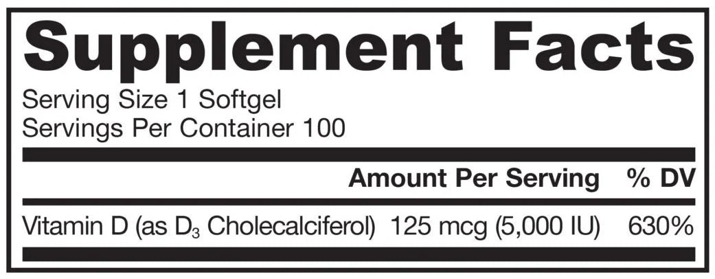 Vitamin D3 5000 IU / 100 Softgels