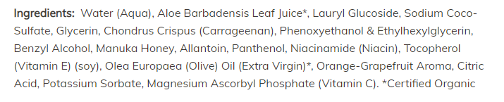• Contains vitamin C, manuka honey, extra virgin olive oil, vitamin E and aloe vera.