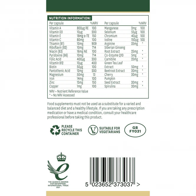 Natures Aid Men's Multi-Vitamins & Minerals helps increase vitality and stamina.