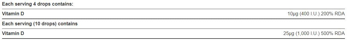 Holland And Barrett / Fast Acting Liquid Vitamin D3 / 100 IU per Drop is a liquid dietary supplement containing high doses of vitamin D3.