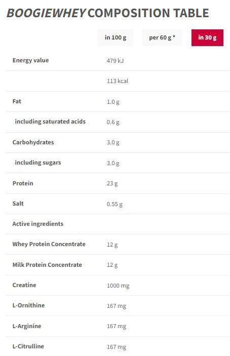 Trec Boogie Whey Protein (Trec BoogieWhey) is the latest protein supplement from Trec , which helps supplement the diet with protein, which in addition to providing building material that increases strength and mass, contains the addition of compounds such as creatine, ornithine, L-arginine and citrulline.