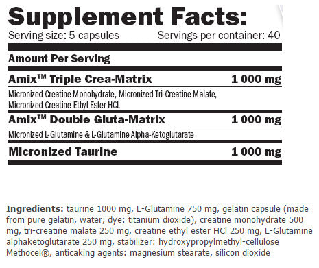 Amix CGT-3 е специално разработена формула, която използва тройна креа-матрица и двойна глута-матрица, за да подпомогне растежа на мускулите, да увеличи силата и експлозивната мощ, и да ускори възстановяването след тренировка. Тази експлозивна комбинация от три форми на креатин (монохидрат, малат и CEE) и мощен комплекс от L-глутамин и L-глутамин AKG предоставя енергия за мускулите, ускорява протеиновия синтез и подпомага секрецията на хормона на растежа.