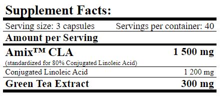 CLA е мастна киселина, която организмът не може да произвежда сам и е известна с намаляването на излишната телесна мазнина, подпомагайки метаболизма на мастните запаси. Комбинацията с екстракт от зелен чай усилва термогенния ефект и подпомага калоричния контрол, особено при активен начин на живот. Формулата използва Methocel CRT-ss технология за контролирано освобождаване, което осигурява дълготраен ефект през деня.