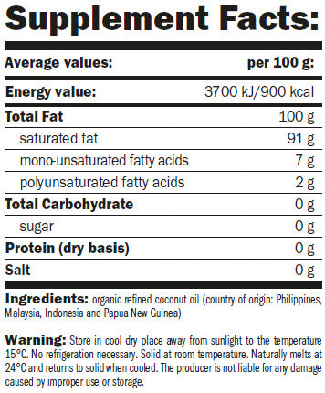 Coconut Oil от Amix е рафинирано кокосово масло с естествени свойства, което подпомага имунната система и здравето на кожата.