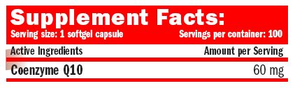 Coenzyme Q10 60 mg. / 100 Softgels.