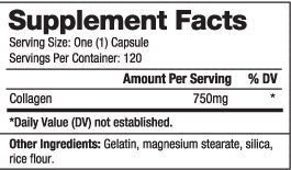 Колагенът е основен протеин в организма и Collagen 750 mg съдържа оптимална комбинация от аминокиселини като аргинин, глутамин, пролин и глицин, които са ключови за формирането и поддържането на съединителната тъкан. Глицинът участва във формирането на креатин и подпомага изграждането на мускулна маса и енергийния метаболизъм. Глутаминът има многобройни ефекти върху имунната активност, психическото благосъстояние и храносмилането, както и поддържа имунната система. Аргилиният участва в процесите на кръвообращение и подкрепя имунната функция, а пролинът е една от основните аминокиселини за здравината на кръвоносните съдове и опорно-двигателния апарат.