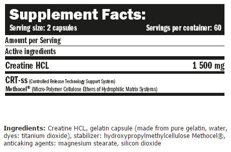 • Високо концентрирана форма на креатин хидрохлорид (HCL) без пълнители