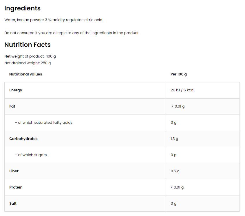 Cognac tagliatelle are the perfect choice for anyone who wants to follow a healthy lifestyle and enjoy delicious food. They are extremely low in calories and contain almost zero carbohydrates, making them suitable for the keto diet. In addition, these spaghetti help improve digestion thanks to their high fiber content.