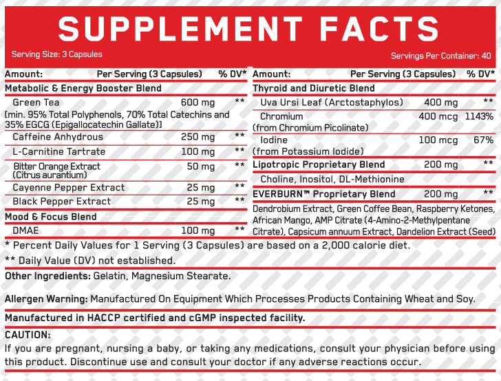 С патентованата комбинация 12 HOURS ENERGY BURST™ Ever Burn осигурява стабилен прилив на енергия и фокус за целия ден. В допълнение, Mood & Focus Blend подобрява концентрацията, докато Thyroid & Diuretic Blend подпомага баланса на щитовидната функция и елиминира излишните течности. Това е мултифункционален подход към напредналото изгаряне на мазнини, който цели здравето на черния дроб и нормализирането на обмена на вещества.