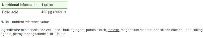 Folic Acid 400 µg is a dietary supplement in tablet form containing folic acid.