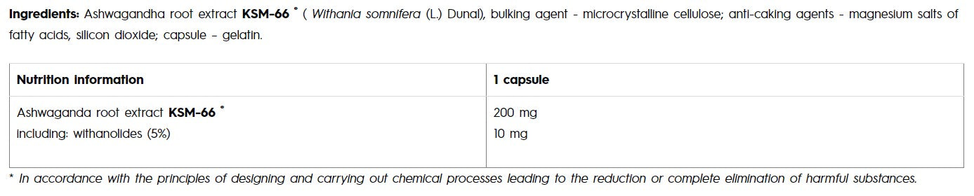 • Висока биологично активна формула от ашваганда