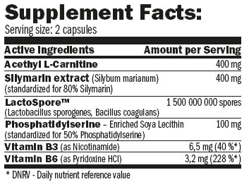 Съставките действат на няколко равнища: ацетил L-карнитин помага за преобразуване на мастните киселини в енергия за клетките; силимаринът осигурява силно антиоксидантно действие и защита на черния дроб; LactoSpore™ подкрепя чревната флора и имунната система. Добавката съдържа витамини B6 и B3, които подпомагат хормоналния баланс, намаляват умората и повишават благосъстоянието. Опаковката съдържа 90 капсули и дневната доза е 2 капсули.