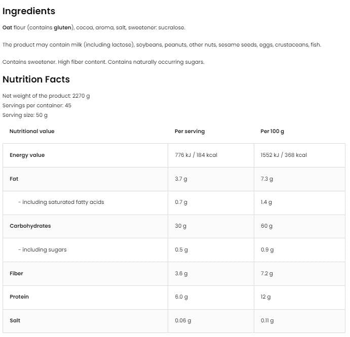 Warning: In case of individual intolerance to gluten, consult a doctor before use. The product may contain traces of nuts and soy.