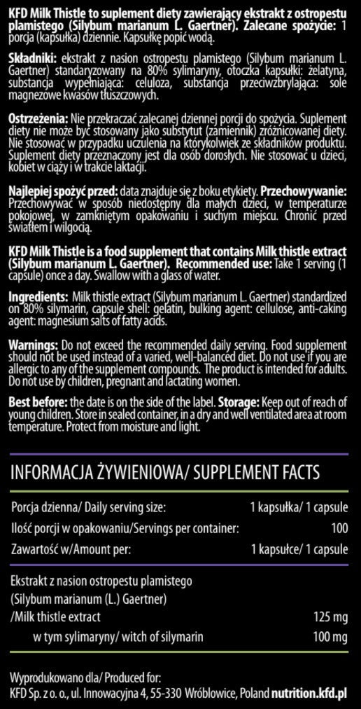 Milk Thistle на KFD е първокласна хранителна добавка, богат източник на силимарин, която подпомага здравето на черния дроб и цялостното благосъстояние.