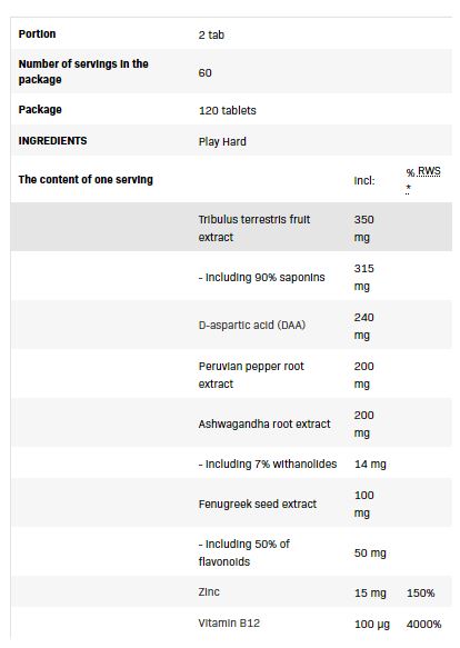 💪 Play Hard Testosterone Booster / 120 Tabs