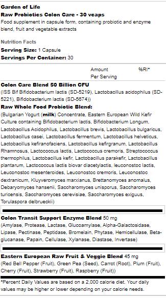 Raw Probiotics | Colon Care - 30 capsules