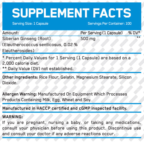 Siberian Ginseng 500 mg / 100 Caps