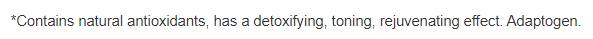 • Съдържа естествени антиоксиданти – подкрепа за детоксикиране и подмладяващо действие.