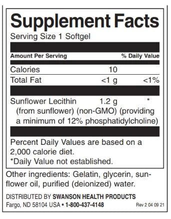 Sunflower Lecithin 1,200 mg | from Non-GMO Sunflower Seeds - 90 Gel capsules