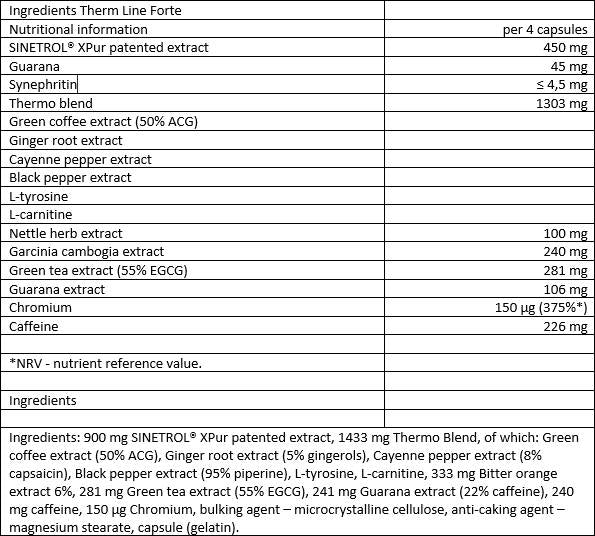 Purpose: a dietary supplement that contributes to the burning of subcutaneous fat in physically active people and athletes.