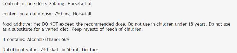 Horsetail tincture, known for its beneficial properties, is a natural dietary supplement that supports the health of the genitourinary system. It is especially effective for people suffering from high blood pressure, thanks to its content of powerful antioxidants and diuretic ingredients.
