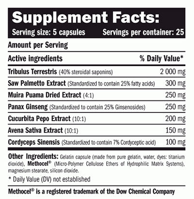 • Билкова формула с Tribulus Terrestris и 6 тестостеронови стимулатори