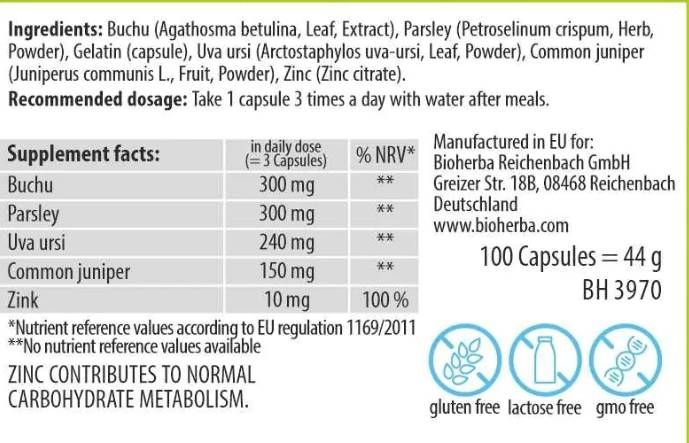 Продуктът съдържа четири натурални билкови съставки: Бучу лист (концентрат 4:1), Магданоз Лист, Мечо Грозде лист, Хвойна плод. Той работи чрез подпомагане на нормалното задържане на вода в организма, което може да намали подпухналостта и да допринесе за по-лесно усещане през дневните часове. Подходящ е за хора, които искат да поддържат водния баланс и да подобрят общото си самочувствие.