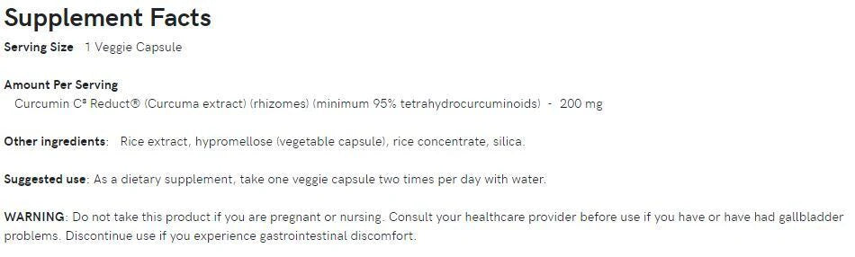 Съставки: Curcumin C³ Reduct® (екстракт от куркума) (Curcuma longa Linn)