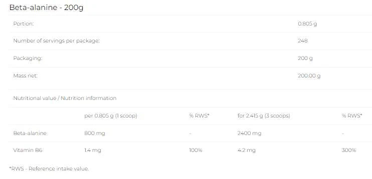 • Бързо усвояване: В добавката е включен витамин B6, който увеличава бионаличността и ефективността на бета-аланина.