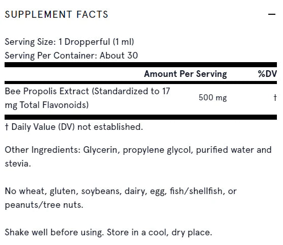 Пчелният прополис е смолиста смес, ензимно произведена от пчелите за стерилизиране и защита на техните кошери и съдържа антиоксидантни биофлавоноиди, традиционно използвани за поддържане на имунната функция.