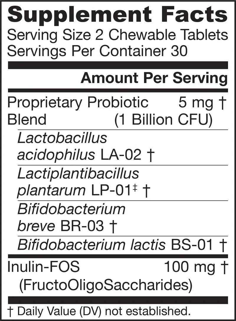 Jarro-Dophilus® Kids предоставя 4 клинично документирани щама полезни бактерии под формата на вкусна таблетка за дъвчене. Полезната чревна флора може да бъде отрицателно повлияна или намалена от диета с ниско съдържание на фибри, високо съдържание на животински протеини, употреба на лекарства, пътуване и стрес и т.н. Резултатът е нарушаване на чревната микрофлора, което може да повлияе негативно на стомашно-чревната функция и благополучие. Благоприятните бактерии в Jarro-Dophilus® Kids помагат за поддържане на балансирана чревна микрофлора, поддържат имунната функция и насърчават здравето.