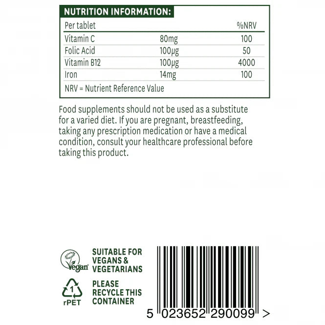 Витамин В12 и фолиева киселина, които допринасят за нормален енергиен метаболизъм, формирането на червени кръвни телца и намаляването на умората.