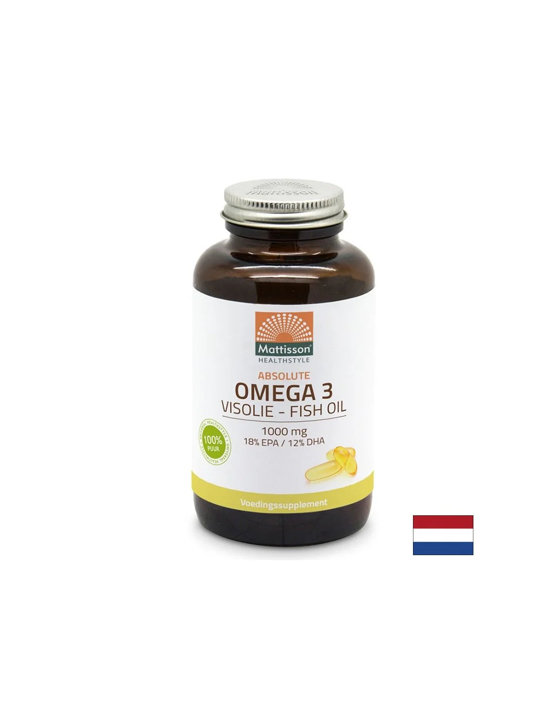 Mattisson Omega 3 Рибено масло 1000 mg съдържа висококачествено, 100% чисто рибено масло, което се пресова при ниска температура от различни видове риба. Поради този лек процес на обработка, тези капсули не съдържат никакви добавки и не са претърпели никакви химически промени. Рибеното масло е източник на омега-3 мастни киселини EPA & DHA. Рибено масло от Матисън 1000 mg съдържа 180 mg EPA & 120 mg DHA.