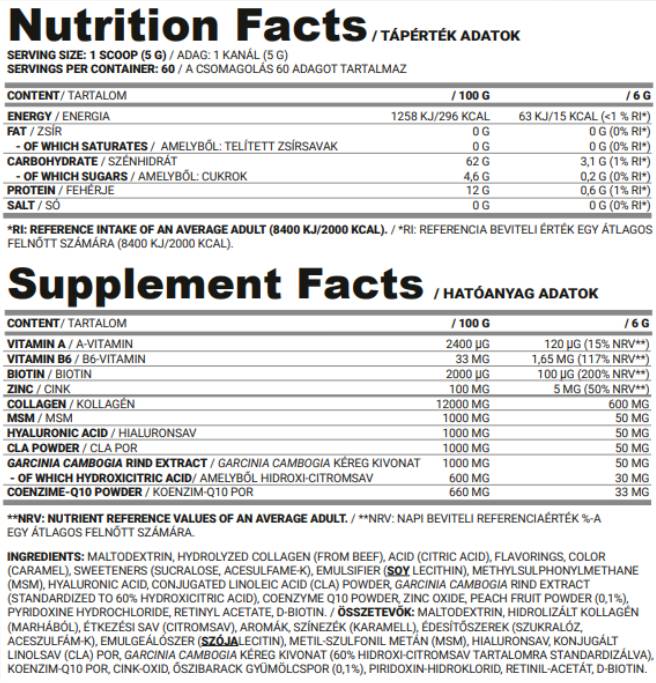 Но не само агентите за поддържане на красотата са намерили своето място в продукта! Добавихме дори CLA и HCA агенти, които са добре известни сред спортистите със своите поддържащи диетата ефекти, така че да няма граници за вашата красота!