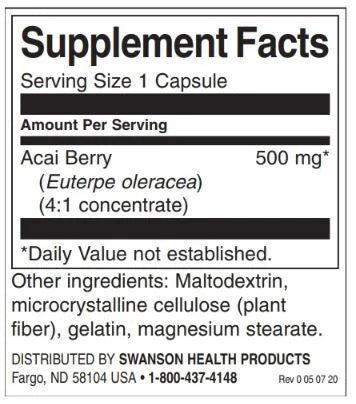 Всяка капсула съдържа 500 мг Акай Бери (Euterpe oleracea) (4:1 концентрат)