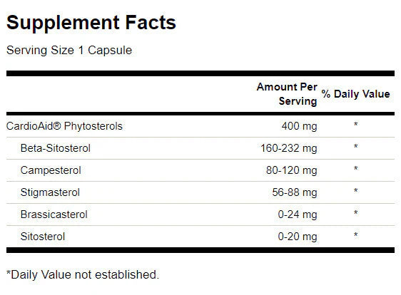 Доказано е, че ако консумирате два пъти на ден храни, съдържащи най-малко 0,4 грама растителни стероли на порция, и комбинирате това с диета от храни с ниско съдържание на наситени мазнини и холестерол, може да намалите значително риска от сърдечно-съдови заболявания. Една порция от нашите Максимално силни растителни стероли CardioAid доставя 0,4 грама растителни стероли.