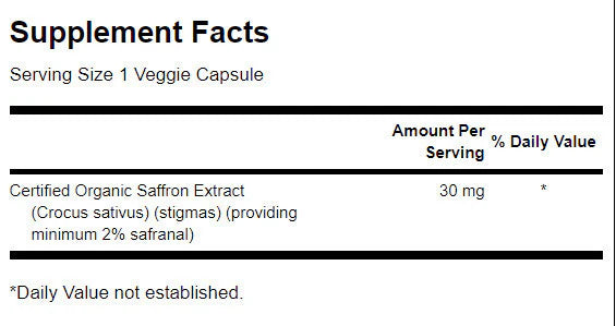Не само жълтият кантарион може да управлява настроението. Шафранът е истинска революция в билковия свят, която ще ви върне радостта от живота. Проучванията, направени в Близкия изток, където шафранът е неразделна част от менюто, установи, че тази природна субстанция е ненадмината в способността да поддържа доброто настроение. Нашият нов екстракт от шафран отговаря на изследователския стандарт, като предоставя 30 mg във всяка капсула. Освен това използваме само сертифициран 100% органичен шафран за гарантирана чистота