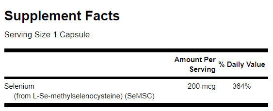 Ако се опитвате да откриете една от най-ефективните добавки със селен, които се предлагат днес, няма нужда да търсите повече. Открийте SeMSC Селен на Суонсън. Тази формула е обогатена с метилселеноцистеин - това е същата форма на селен, която се открива в чесъна, броколите и брюкселското зеле. Метилселеноцистеинът представлява комплекс от аминокиселини и селен с висока бионаличност, който защитава по уникален начин дебелото черво и цялостното здраве на организма. Антиоксидантните му свойства му позволяват да стимулира блокирането на клетъчните увреждания, които настъпват от свободните радикали.