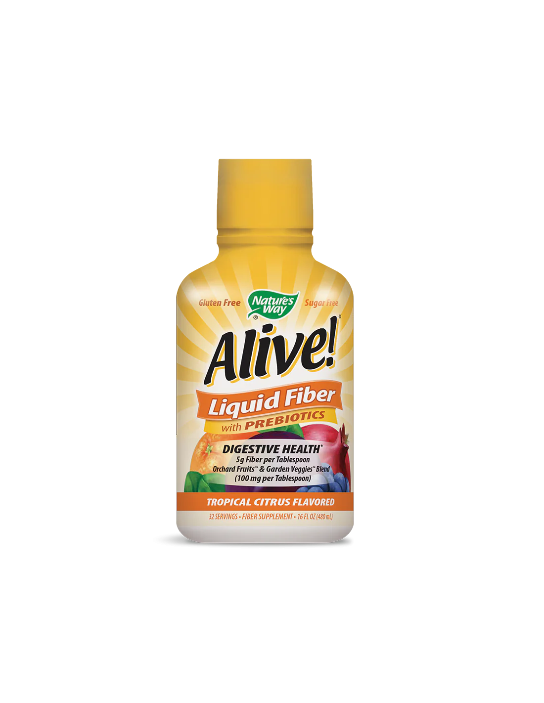 Течни фибри с пребиотици Алайв - Alive! Liquid Fiber With Prebiotics, 480 ml, 32 дози (с цитрусов вкус)