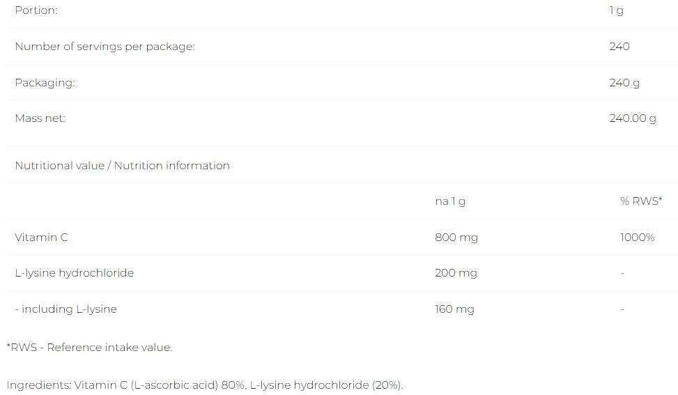 Открийте силата на Витамин C и L-лизин с нашия уникален прахообразен продукт. Този специален комплекс не само че поддържа вашето здраве, но и предлага многобройни ползи за организма.